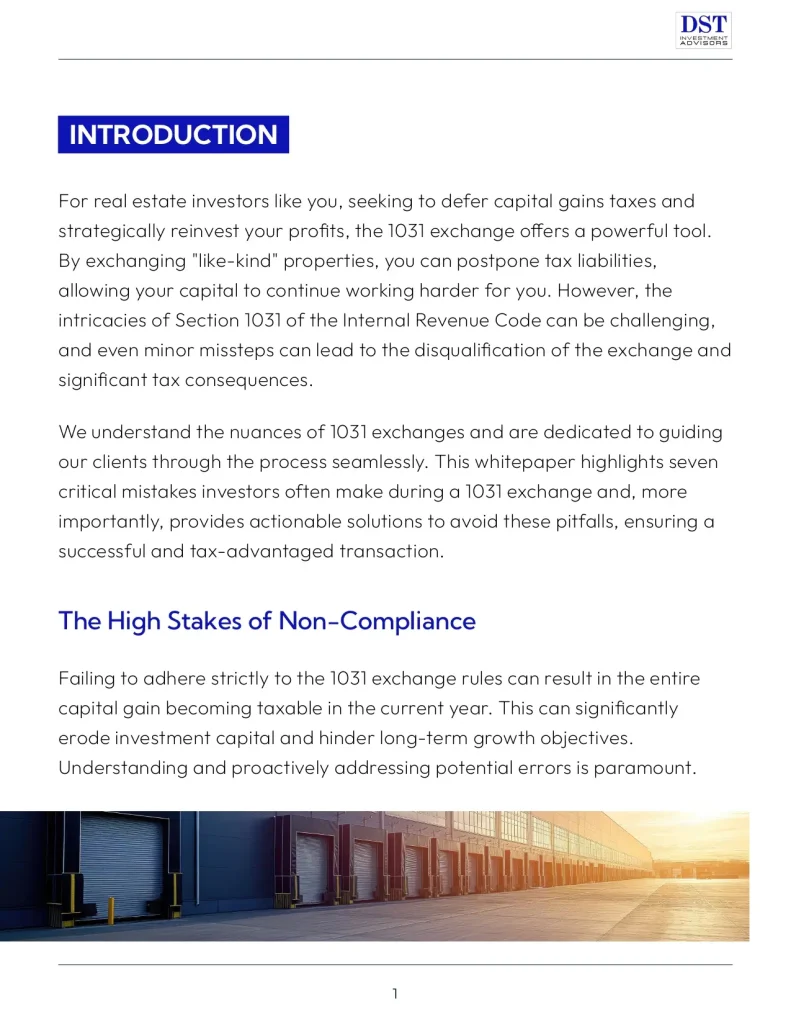 Download Our Whitepaper to discover how to defer capital gains taxes and protect your investment by avoiding the most common 1031 exchange pitfalls.