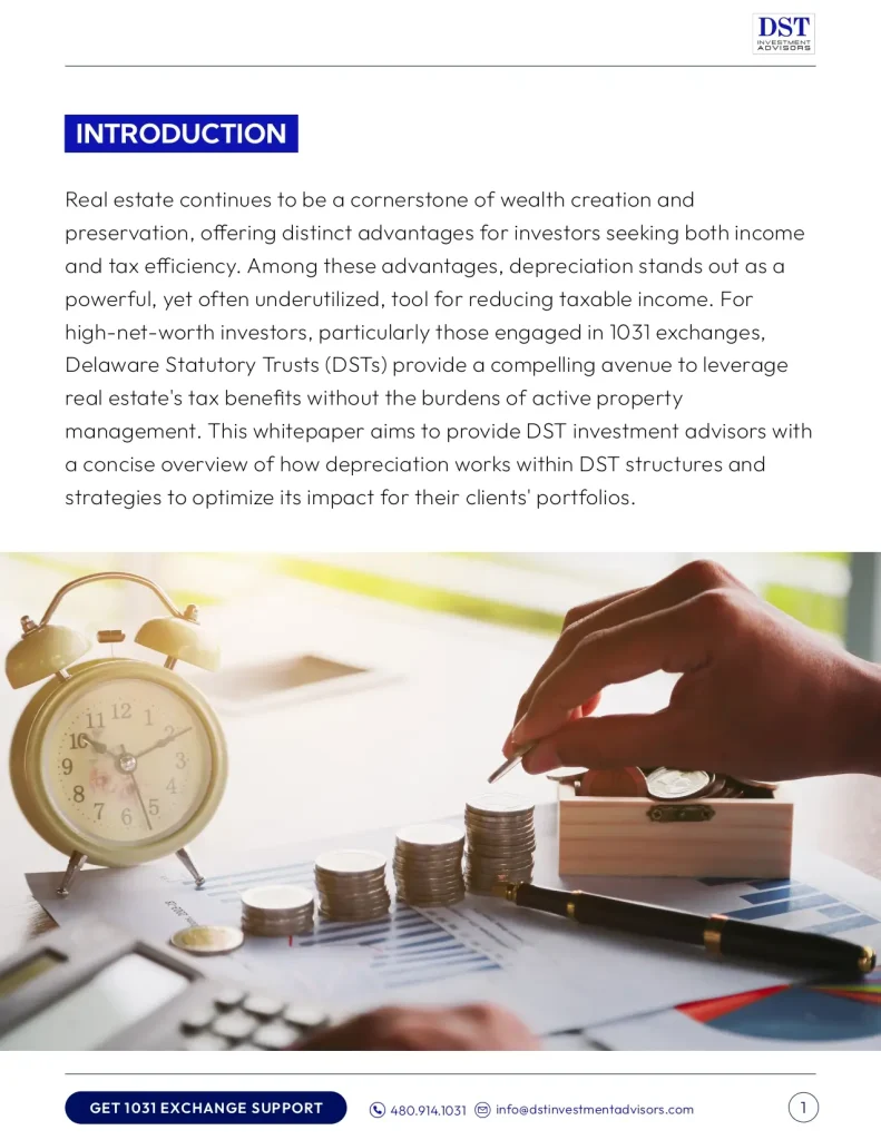 Download Our Whitepaper to discover how Delaware Statutory Trusts maximize real estate depreciation, reduce taxable income, and enhance long-term tax efficiency for 1031 exchange investors.